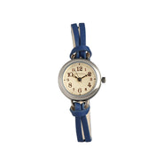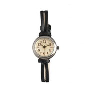 A delicate, petite band that uniquely comes to a loop with a metal accent that connects to the watch case.
