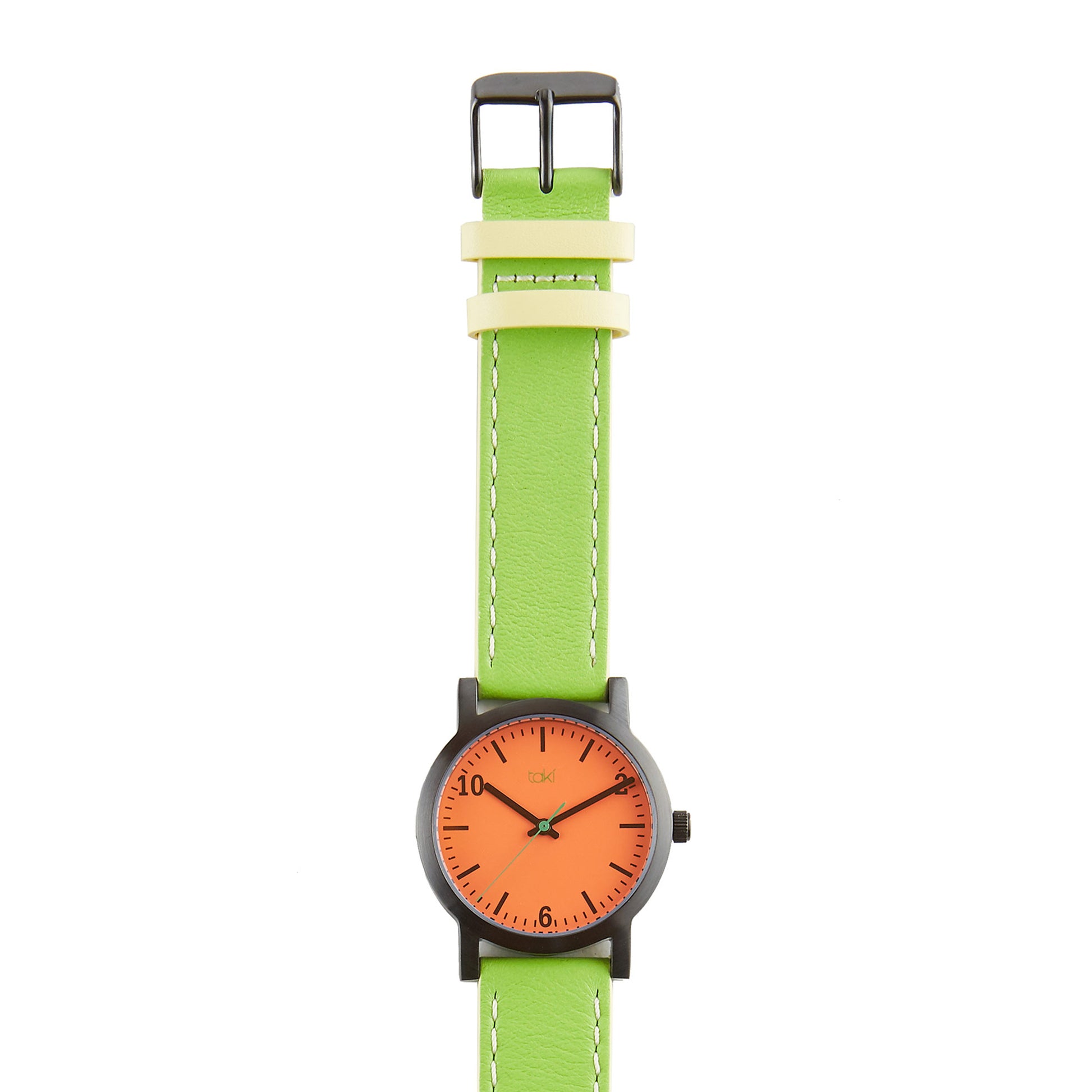 The Park watch collection is the smaller mid-size women's version of the popular men's Kenwood style. Uniquely featuring the signature 2, 6, and 10 numerals in a bright and fun color palette. The slim brushed black case and smooth leather band with accent stitching will add a pop of color to every wardrobe.