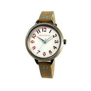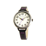 The best-selling Trail watch is a compact women's style with contrast top stitching on a soft Italian suede leather band. Stitching color matches the second hand for cohesive detailing on the full numbered dial. A simple style with unexpected details.