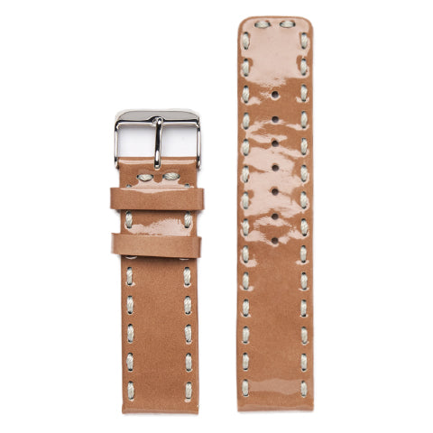 The Tramlucent watch band features bold colored leather bands with contrast top stitching and a high gloss finish.